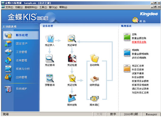 賬務(wù)處理是核心模塊,主要包括憑證處理、賬簿、期末處理等。